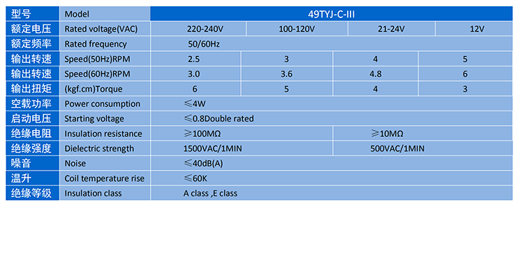 產(chǎn)品名稱同步電機49TYJ-C-III